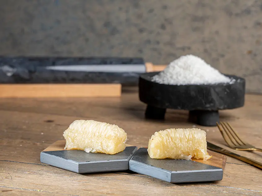 Diese einzigartige Variante der traditionellen türkischen Baklava verbindet die kunstvolle Handwerkskunst mit einer überraschenden Füllung aus feinen Kokosraspeln. Das Ergebnis: Ein unvergessliches Geschmackserlebnis, das Orient und Exotik auf Ihrem Gaumen vereint.